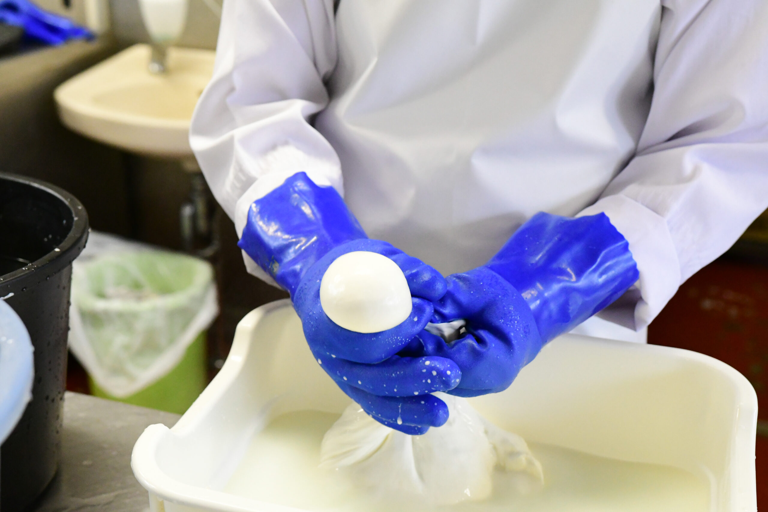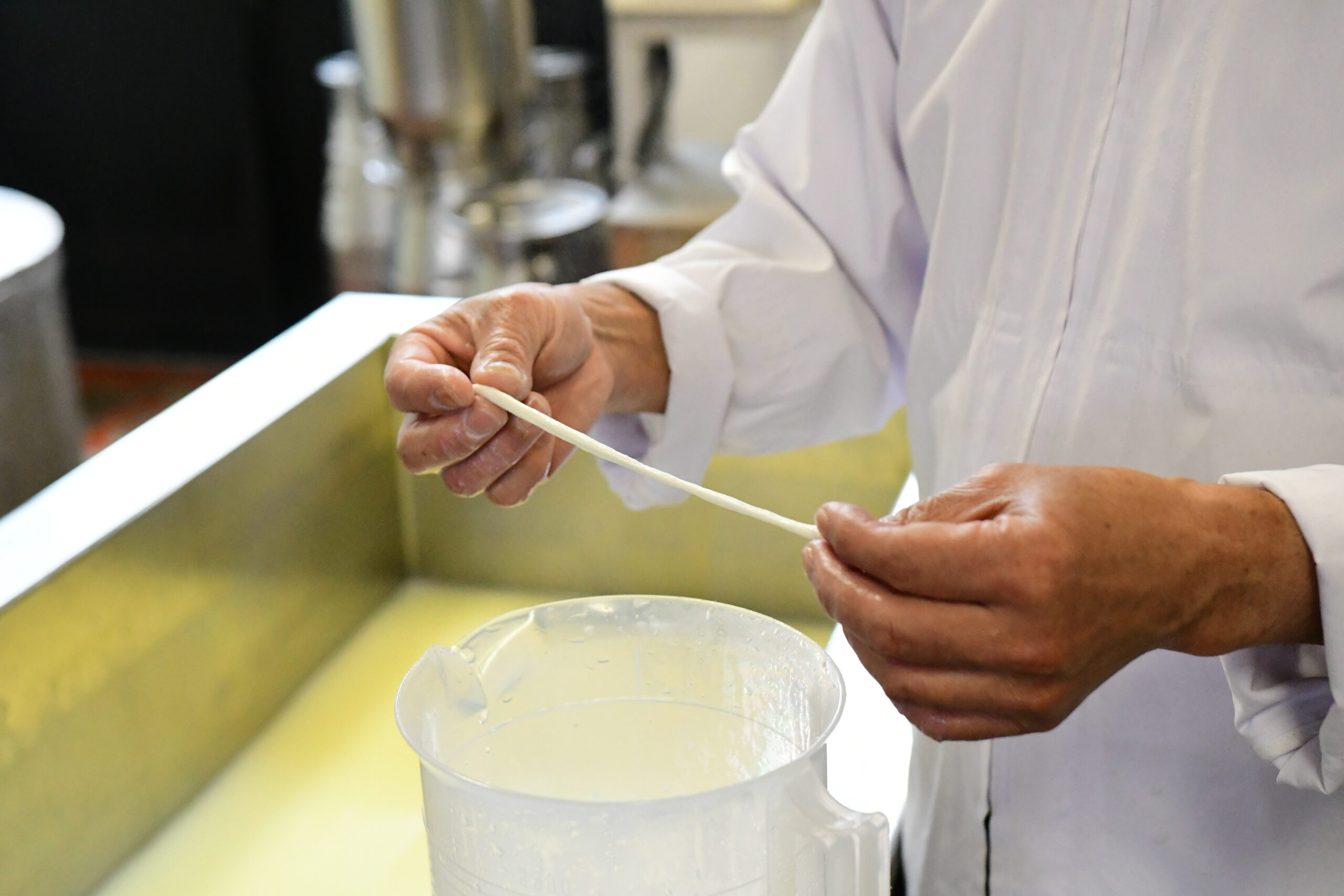 ――チーズ工房にお邪魔してモッツァレラが伸びる様子を拝見しました。